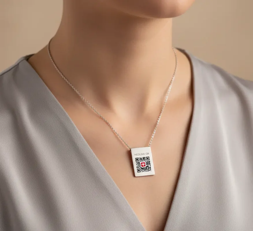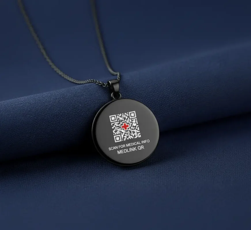I didn't want a clunky medical bracelet—I wanted something stylish. The MEDLINK QR necklace in black is sleek, modern, and frankly, looks great! Most people don't even realize it's a medical ID, yet the vital QR code is right on the back. It’s the perfect blend of discreet style and critical security.