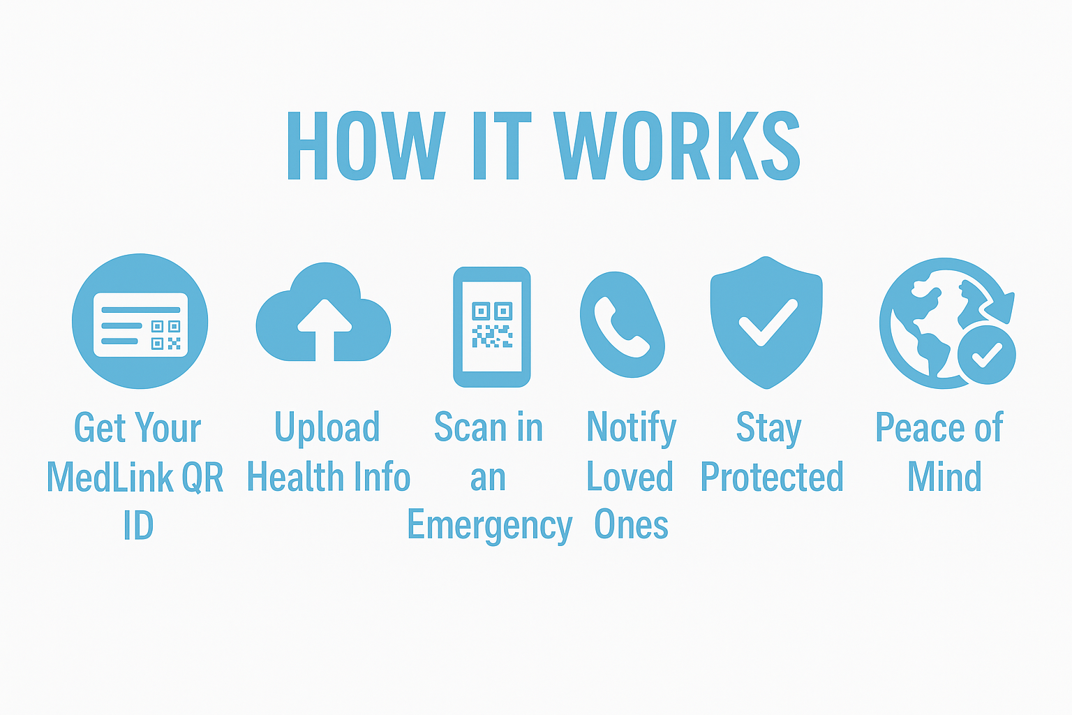 MedLink QR isn’t just a medical ID—it’s a complete safety system designed to protect you and your loved ones. Here’s how it works to give you peace of mind every day: